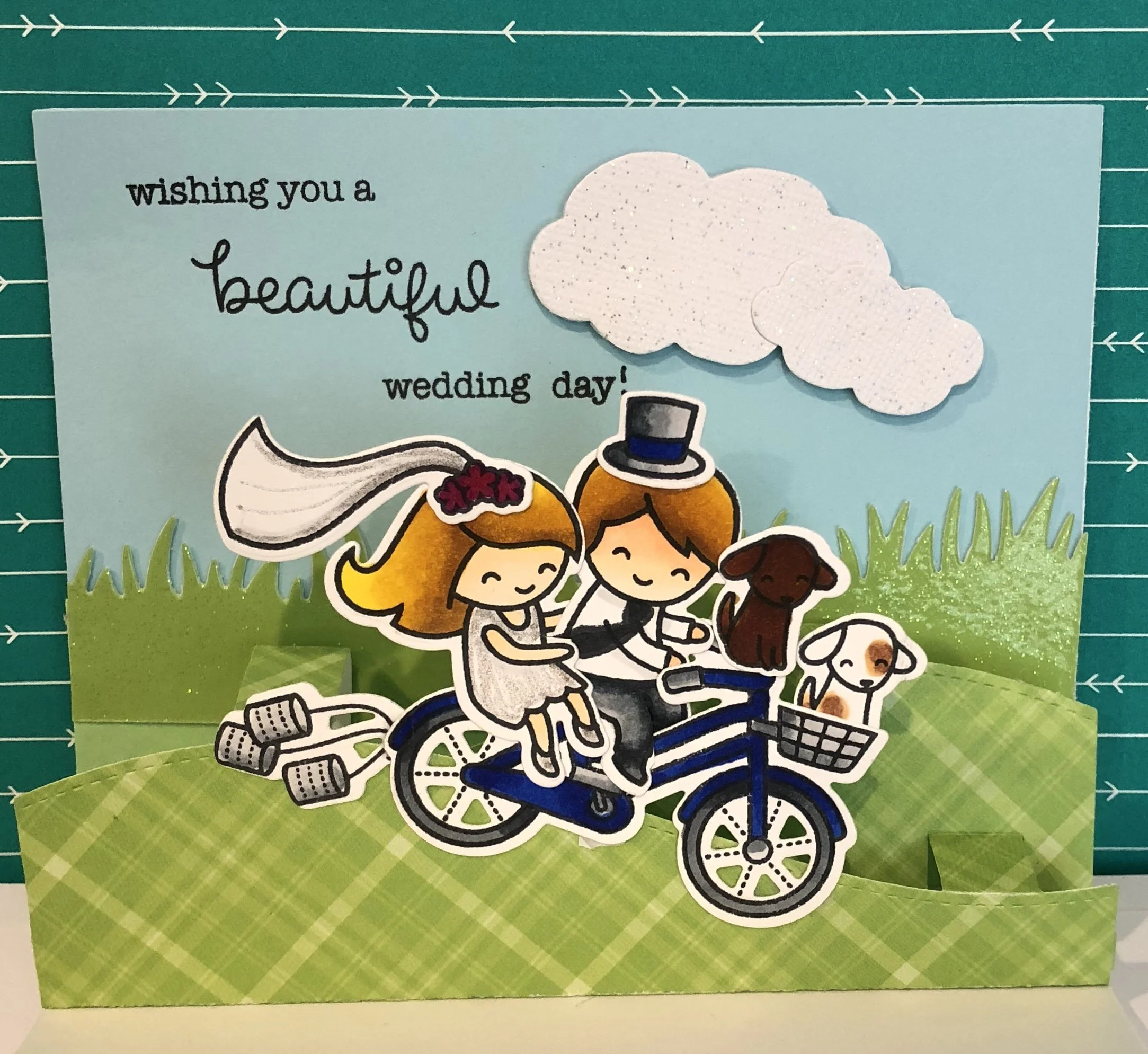 Bicycle Built For You Stamp Set, Grass die cut, Hill pop up die cut are all by Lawn Fawn! The clouds I cut using MFT Stamps cloud dies.